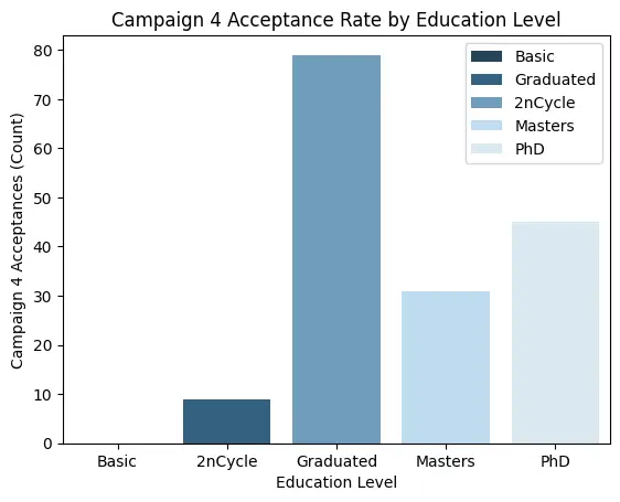 Education level significantly influences acceptance rates for Campaign 4.